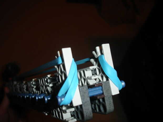 2. Envuelva una sola goma alrededor del gatillo. Asegúrese de que la fuerza de esta goma es mayor que la de la munición porque sostiene la munición del futuro.