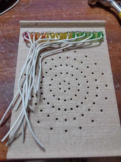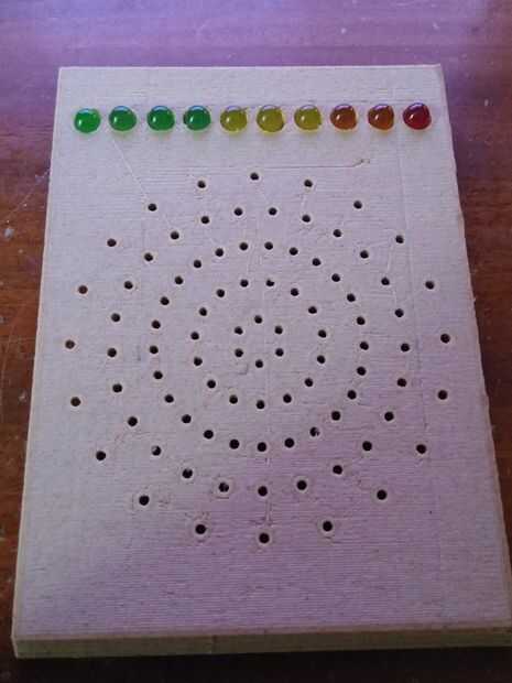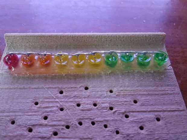 Muy bien así los orificios situados en la parte superior de la carcasa están destinados a mantener 10 5 mm LED. Los colores son hasta utilicé 4 verde, 3 amarillo, 2 naranja y 1 rojo, todos los LED se difunden
