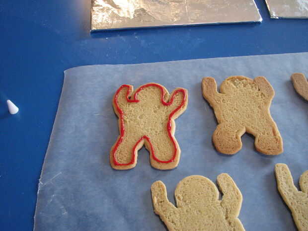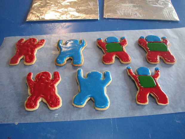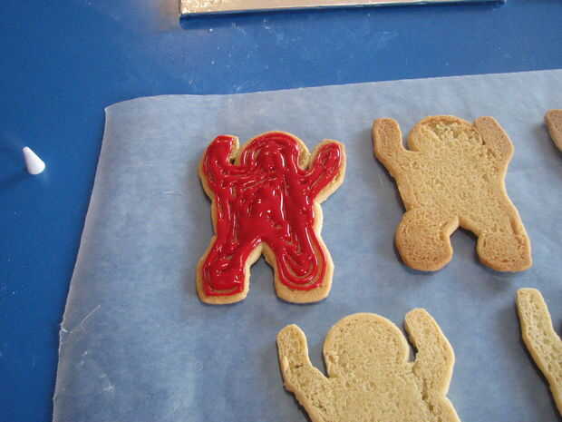 (Nota: probé algunos helar en algunas de las galletas. No pude obtener el tipo de detalle que yo quería en estas galletas. También tengo una buena herramienta para alisar el glaseado sobre las galletas.)
