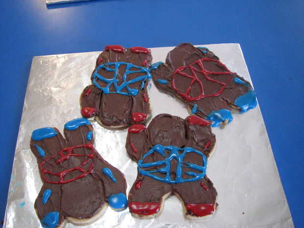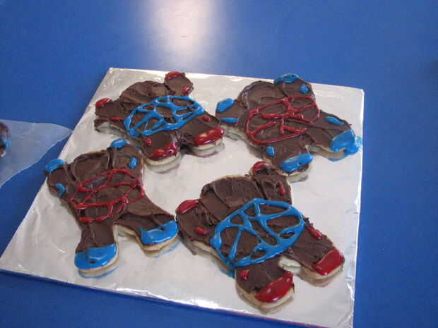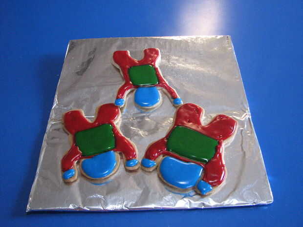 Si vas a tomar estas galletas para una fiesta, celebrando un cumpleaños en un túnel de viento vertical iFly o enviarlos en un paquete de cuidado, puede utilizar un dap de hielo o escarcha en la parte inferior de las galletas para mantener en su lugar en las bandejas.