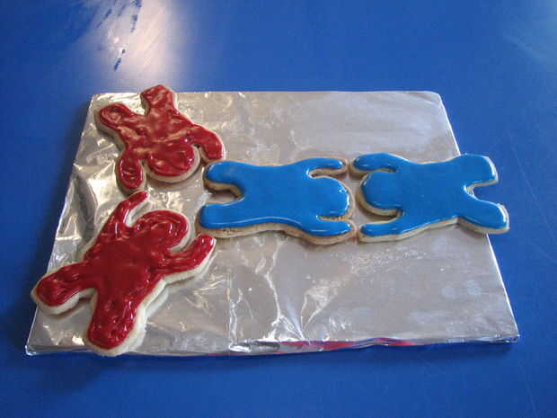 Después de permitir que una hora para que el glaseado se endurezca, mover las galletas sobre las bandejas anteriores. Puede organizar las cookies en formaciones diferentes de paracaidismo. 4-way formación Skydiving (FS) es una de las más populares disciplinas de competencia en paracaidismo. Este es un gran lugar para comenzar para obtener ideas sobre cómo organizar su equipo.