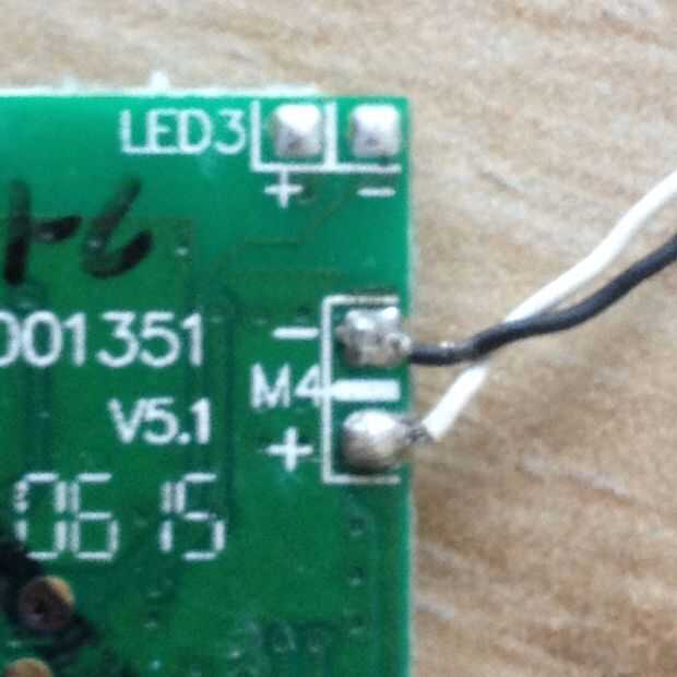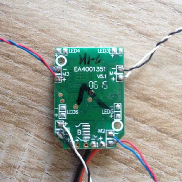 Esto requiere soldar un poco pero nada muy difícil. Si nos fijamos en el controlador de vuelo, el lugar donde hay que soldar el motor ya está etiquetado.