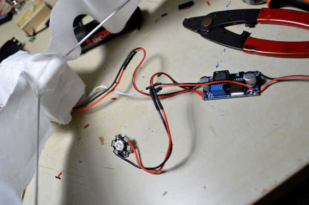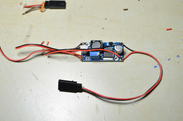 Este paso es totalmente dependiente de qué fuente de energía usted elige utilizar. Opté por usar un convertidor reductor para bajar el voltaje de 5v a salida del quadcopter a 3v para los LEDs. Este paso también podría hacerse utilizando 2 pilas AA o reemplazar el descender con resistencias.