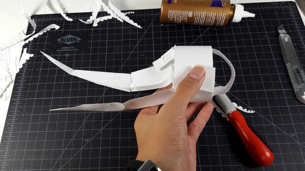 El marco general fue hecho de tiras de papel stock conectado usando cinta de doble cara. Recuerde que el marco no tiene que ser perfecto; todo tiene que ser es una forma general. Aquí está una gran imagen para tratar de replicar.