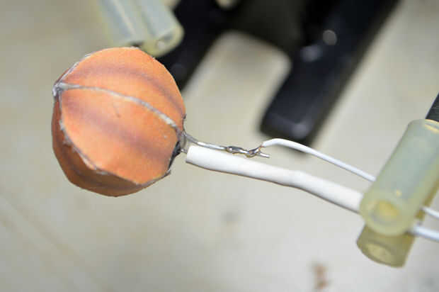 2. Soldar los cables a la calabaza led