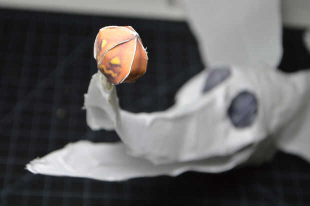 La nariz se añade usando un poco de pegamento caliente en la punta del hocico. No se olvide de pegar el alambre a la parte inferior de la mandíbula superior con toques de pegamento caliente.