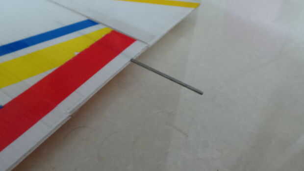 Corte de ejes de barras de metal e insertarlos en coroplast y fijarlos con pegamento.