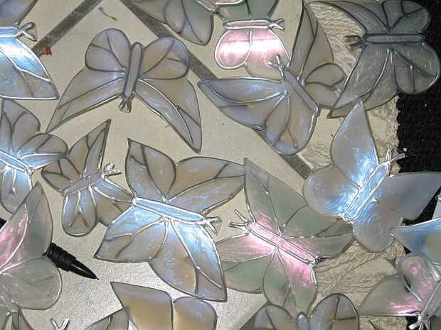 Aquí sólo está utilizando un pincel y la pintura de vidrio. La pintura quieras en el mismo lado de la mariposa que los contornos del plomo líquido.