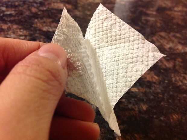 Bastante simple. Cortar un rectángulo a la toalla de papel. Para que sea más ligero, separe las dos capas. Escriba su deseo. Después, dobla la toalla de papel en cuartos y listo!