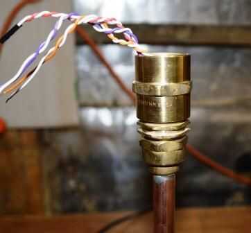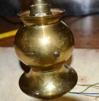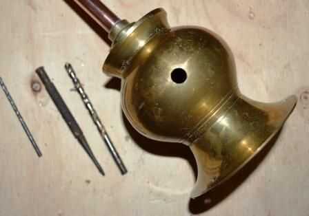 5. soldar o pegar en el globo a la guarnición de cobre amarillo. Me las arreglé para rosca de tornillo de mina de una manera justa por dremeling la de la conexión coppoer.
