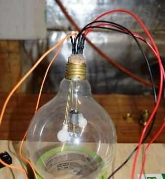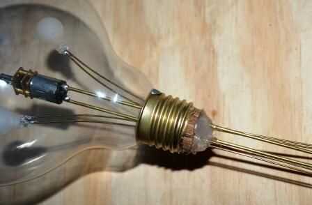 5. Corte el alambre de cobre exceso y conectar algunos cables. También es bueno agregar algunos del encogimiento del calor. Los cables que se muestran en las fotos con que he decidido no ir. En su lugar utilicé un alambre torcido que saqué de un ordenador viejo. Ahora usted debe tener un globo con de un plano y 2 LED interior – quién lo hubiera pensado! Al principio fui con LED azul pero había decidido que parecía demasiado fríos y fue por unos amarillos. Se puede ver en algunas de las imágenes que hay azul que a veces y otras veces de amarillo. Si estás pensando en hacer esto, asegúrese de que usted decida qué color desea primero como era un dolor en la ar # y tratando de cambiarlos.