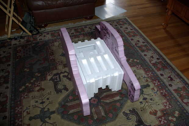 Después de trazar la plantilla en 1" aislamiento de la espuma en el hogar comprado Depot, utilicé un Cortador de espuma de alambre caliente para tallar los lados del coche. Si sólo tiene una herramienta para la fabricación de accesorios de halloween te recomiendo el cortador de la espuma, ha sido la mejor compra nunca y mi primer proyecto de espuma mucho más fácil y más agradable que si tuve que usar una hoja dentada y haz pequeños pedacitos de espuma por todas partes.