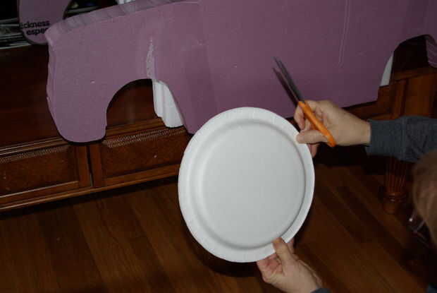las ruedas fueron hechas del mismo modo que los lados estaban. Probamos platos de papel de diferentes tamaños hasta que encontramos uno que nos gustaban. rastro de la espuma y tallar. debe tener bastante trozos de los lados para adaptarse a las ruedas por lo que no necesitará comprar más espuma.