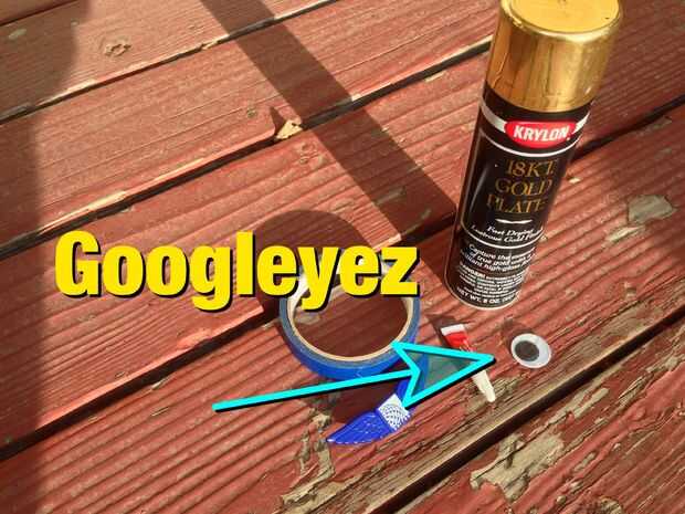 7. Coloque su ojo Googlie donde quieren, establecer plano y deje que se seque (tiempo de secado varía dependiendo del tipo de pegamento - no sugiero colas blancas como pegamento de Elmer de la escuela)