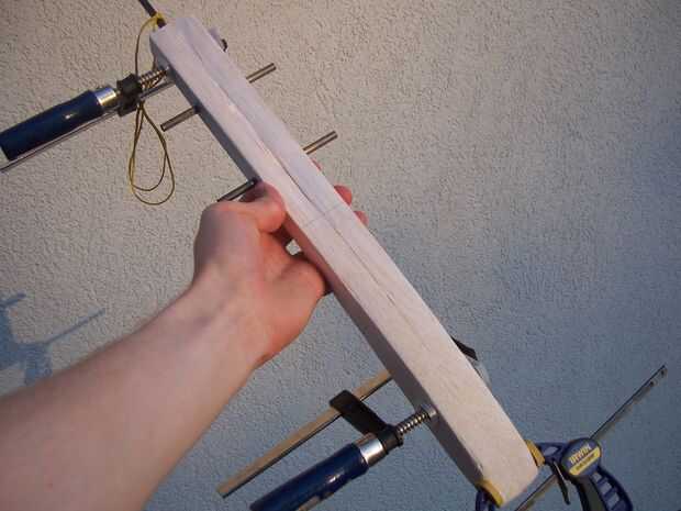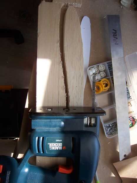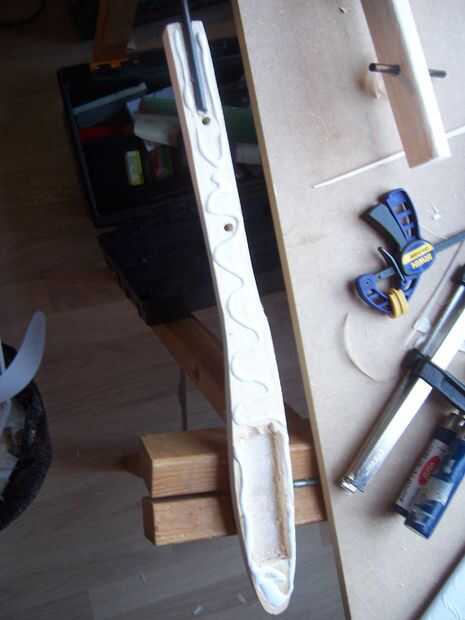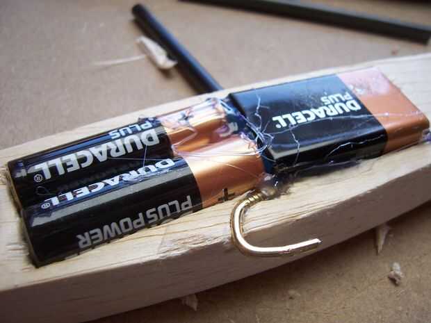 Utilicé madera de balsa de espesor de 20mm para crear un gran fuselaje. Se ha utilizado una sierra de calar para hacer cortes rápidos y limpios en la balsa, usa un cincel para hacer espacio para los pesos más adelante cuando equilibrar el avión antes de volar. Tuve que poner 4 pilas usadas en el fuselaje para que sea equilibrado, para un total de 80g, que era bastante, pero el ala era también más hacia el frente. También se puede ver que se ha colocado un gancho para el HiStart, asegúrese de que está situado en frente del CG (centro de gravedad) que es generalmente en el 30% del ala. Después de esto todo se hizo, ya era hora de pegar, el tubo de carbono fue unido con la pistola de pegamento caliente, el fuselaje con pegamento de madera ordinaria.