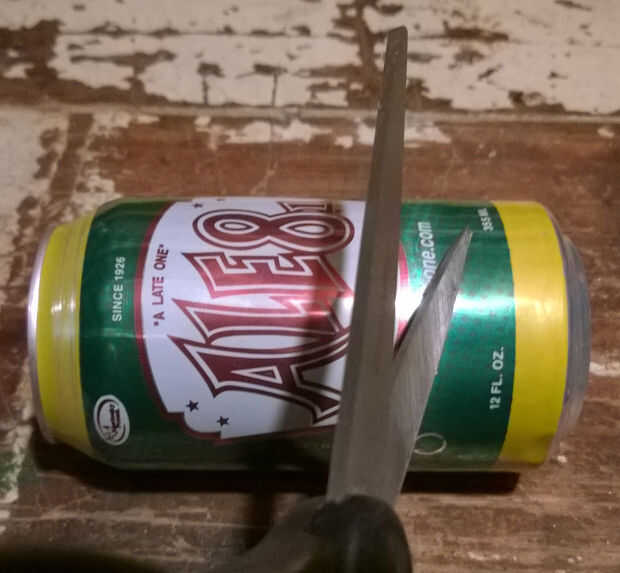 Utilice un par de tijeras para cortar la parte inferior. El primer corte puede ser hackeado como el poder no está abollada. limpiar su hackeado primero se corta con un corte de segundo o tercero.