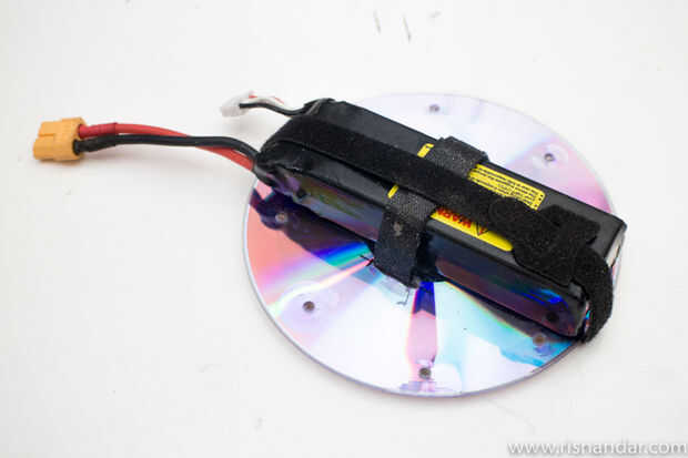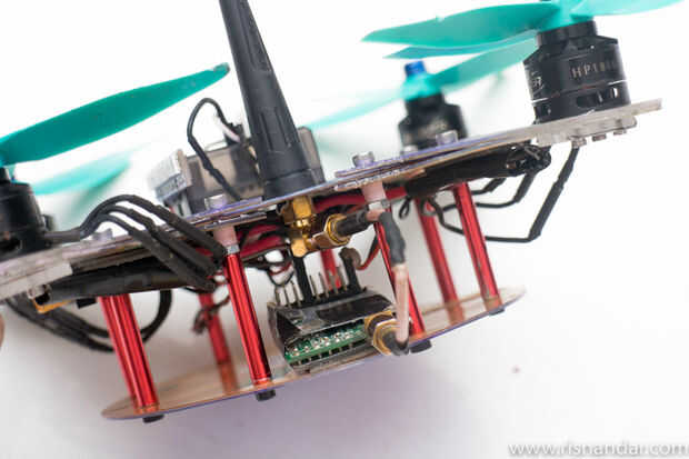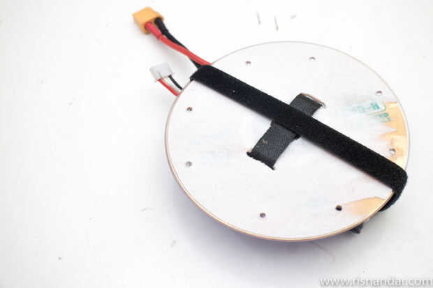 No hay mucho componentes en esta sección. Sólo puse la batería 2200mah 3S y OpenLRS receptor. Para conectar con el centro superior placa use estos agujeros y poner separador 8. Para la seguridad de correa de la batería se utiliza para ambos lados de la batería.