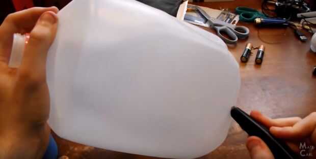 Una vez tengas el diseño pensado, usé el plástico de un galón de leche como el material final. Trazó el diseño de papel sobre el plástico luego recortar con un cuchillo del exacto.