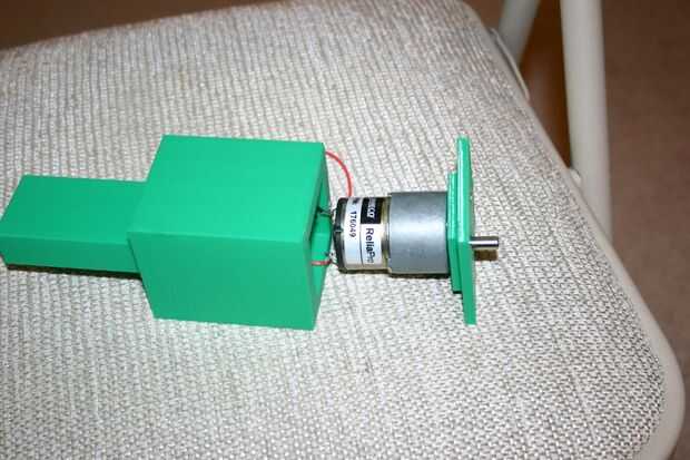 Comenzar con la base. Esto es sólo una pieza con una ranura cuadrada lo suficientemente grande para el motor (con un agujero por la parte trasera para cables). Conecte la fuente de alimentación del motor y coloque el motor en la base.
