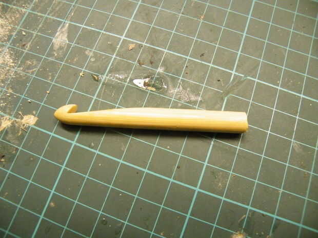 I luego perforar un agujero en el eje del gancho, cortado las esquinas con un cuchillo afilado y luego presentó los bordes lisos para evitar que se enganchen en el hilo.