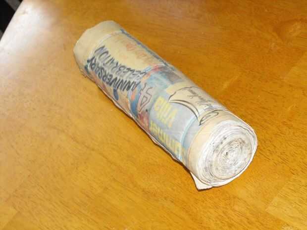 Aquí es un tiro del tronco que se secó. Un desafortunado efecto secundario es a veces que el registro de papel crecerá un pequeño molde en él mientras está secando. Esto se puede ver en el lado del rodillo. Si te molesta este tipo de cosas, entonces se debe probablemente colocar el rollo sobre una malla de alambre suspendido, o alambre de pollo por lo que pueden secarse sin sentado en un charco.