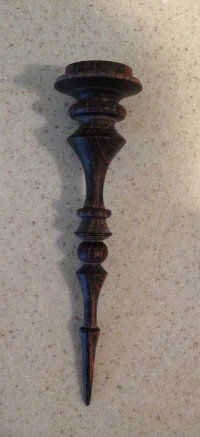 Parte final de la pieza de eje largo que cubra el agujero inferior de ornamento. Esta parte debe ser del mismo tamaño exacto que el agujero de ornamento. Medida con calibradores de precisión. Después de crear esta parte, comenzar a formar el huso a su diseño deseado. Las más delgadas y más delicadas el mejor! En la sección restante de la población, girar a un casquillo corto para la abertura superior de la ornamentación. Completa cada pieza a la medida de lo posible sin tronzado totalmente las secciones. Las secciones a 600 grano de arena. Ahora, parte final del husillo apagado. Cortar la otra parte según sea necesario.