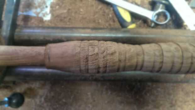 Luego vino el pequeño adorno que son totalmente opcional, pero creo que añaden a la apariencia y el agarre de la cosa. Éstos fueron hechos otra vez con el cincel para sesgar, de hecho la mayoría de mi trabajo se hace uso.