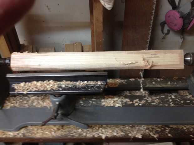 amasar en madera de haya. Hecho de la pata de una mesa antigua que encontré en la acera, el mismo que usé para este trompoHerramientas:-Torno-Papel de lija (graneado fino)-Herramienta plazas-Lápiz-Sierra (cualquier tipo que puede atravesar la madera