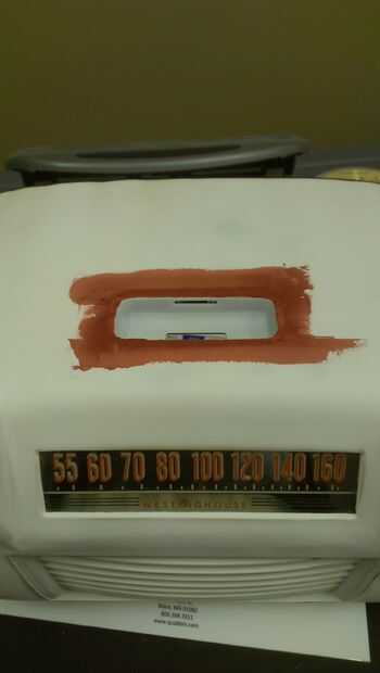 Entonces usted debe dar todo el exterior de la radio (incluyendo su conector para base dock) un ligero lijado con algún papel de lija de 400 grano, para suavizar un poco. Entonces, la máscara de cualquier área no quiero pintura en (como la esfera) y poner una capa de imprimación.