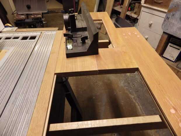 Pegué las 2 tablas juntas y routered un descuento de 10 mm en la parte superior después de cortar con una sierra de calar el agujero usé nylon de 10 mm para la elevación de router superior pero ya reforzado lo con tiras de madera hacen que las tiras son lo suficientemente delgadas como para la tabla se deslice en más allá de los soportes de la mesa.