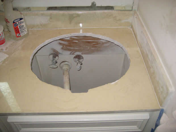 Vuelva a colocar el fregadero en una encimera de mármol cultivado (15 / 25 paso)