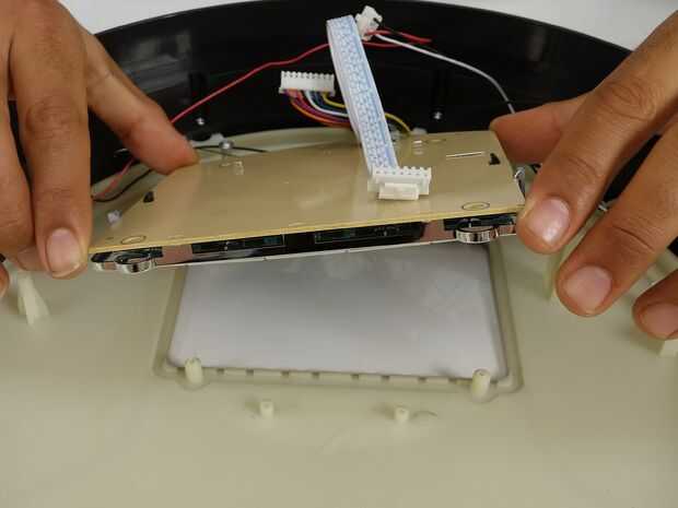 Coloque la pantalla hacia abajo sobre los postes del tornillo en la cubierta de bObsweep. Asegúrese de que se encuentra sobre el sensor de infrarrojos.