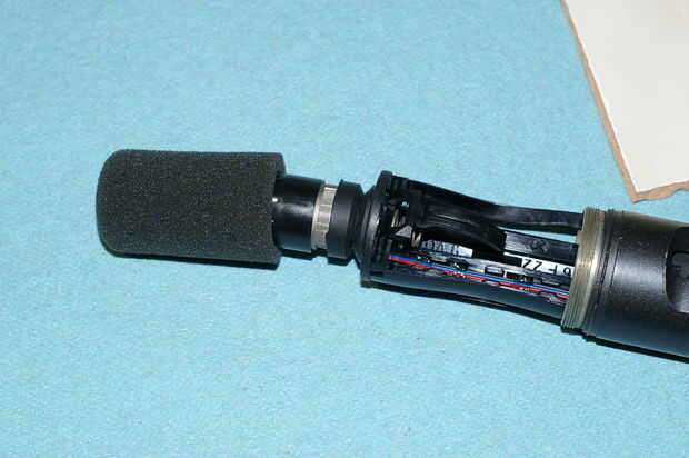 Enrosque el conjunto reparado parrilla/manga sobre el cuerpo de la mic.