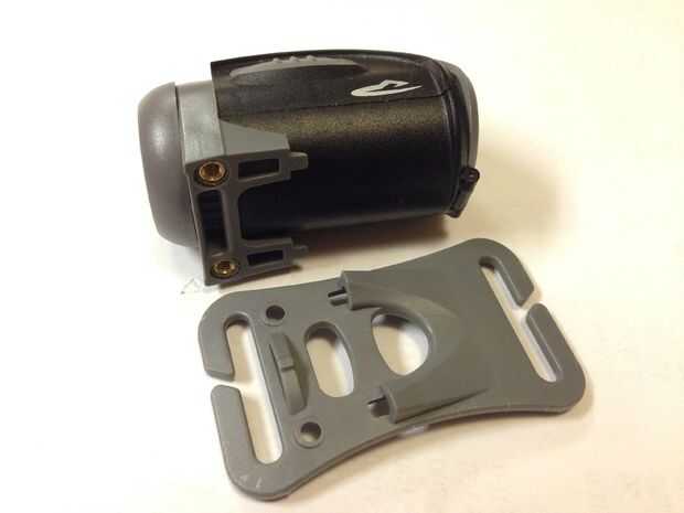 Quite el montaje de la correa deslizando hacia el final de la puerta de la batería de la luz, mientras levanta con cuidado el extremo del Monte que está lejos de la puerta. Esto ayudará a levantar el bloqueo de la fricción arco (moldeado en el montaje de la correa) fuera de la ranura para que el soporte se deslice hacia el final de la puerta de la batería de la lámpara y quitarse.