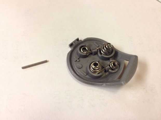 En la foto es la puerta de la batería nueva y un nuevo PIN de bisagra que recibí de Princeton TEC.