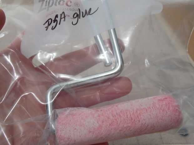 Tome el rodillo y colocar en la bolsa Ziploc; mantendrá húmeda para uso futuro. Algunos pegamentos pueden limpiarse con agua y jabón, compruebe las indicaciones de la marca que utilizas.