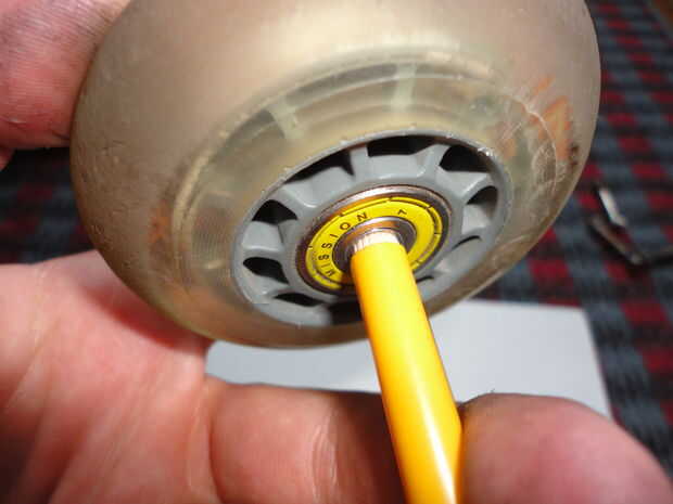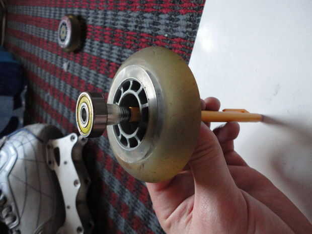 3. Quite los otros rodamientos y espaciador con un bolígrafo.