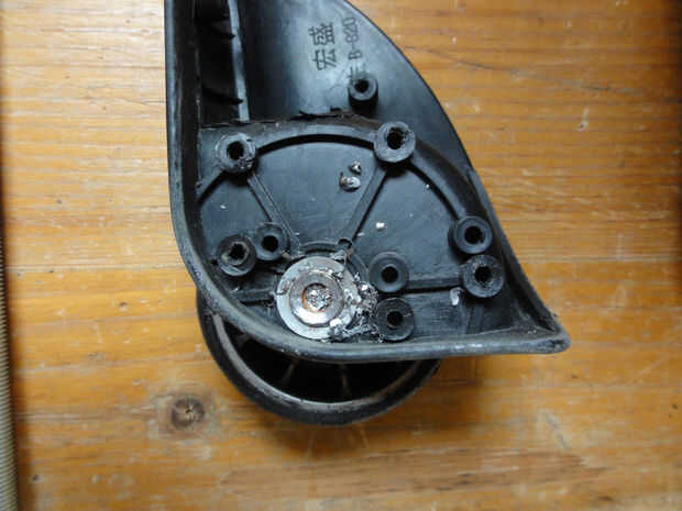Con un taladro de 8mm, perfore el borde en el extremo del eje. Con un destornillador u otra herramienta, palanca suelta la Wi y eje de la pieza de plástico.