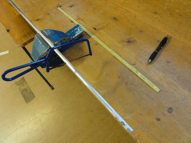 Mida el ancho interior de la bowcase. Corte el tubo de metal de longitud.