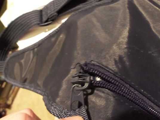 Una de las pistas debe ser ligeramente más larga que el otro, como son escalonadas. Iniciar con esa pista y alimentan una de las 2 ramas de la "Y", con el tirón de la cremallera hacia fuera. Una vez que tienes la primera pista iniciada, alimentar la otra canción en la otra rama de la "Y".