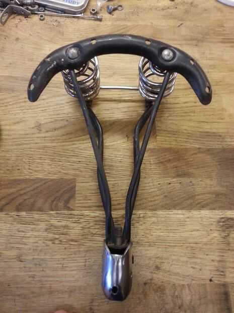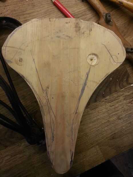 Voltear boca abajo el armazón de la silla de montar y vuelta en un bloque de pino viejo.