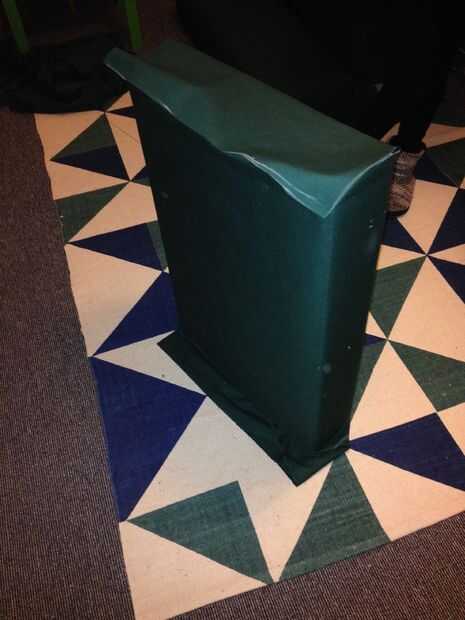 Los brazos una vez más fueron envuelto como un regalo de Navidad. Utilizamos una técnica de costura similar como en la etapa anterior pero en lugar de utilizar un panel separado para los lados frontales y posterior del resto brazo simplemente cortamos la tela para formar a una especie de ficha. Esta había doblado en la parte delantera y trasera de los apoyabrazos y salvó un montón de tiempo y energía. Esto fue fijado luego cosido antes da vuelta adentro hacia fuera y colocar sobre el apoyabrazos. Probar y hacer un agradable un ajustada.