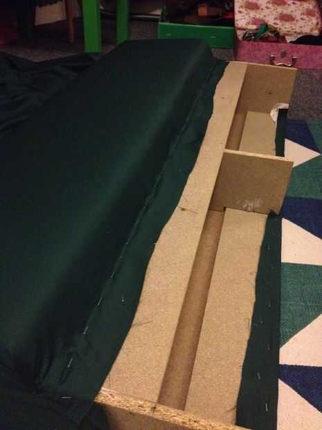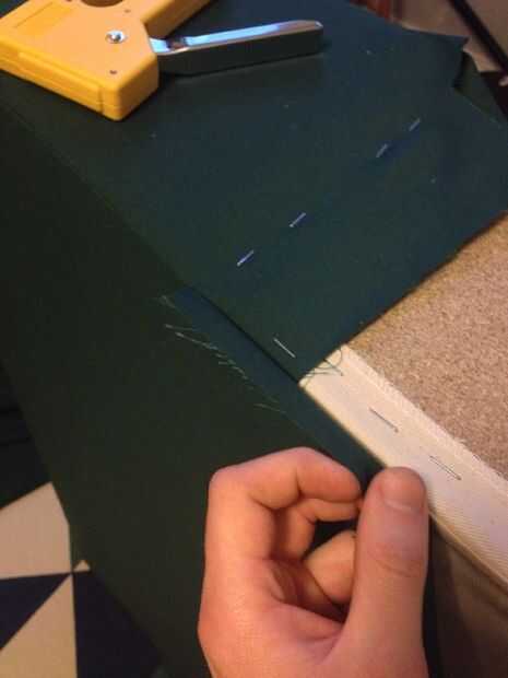 Fije la tela doblando justo en la parte inferior del sofá hacia atrás antes de grapar. En el avance hacia el lado de la parte posterior tendrá que luchar a la tela alrededor de las esquinas del labio sobresaliente. Encontré la combinación de pliegues y algunas grapas creativa producción un acabado ordenado. Mucho de esto será cubierto por otras secciones del sofá así que usted puede permitirse ser un poco desordenado.