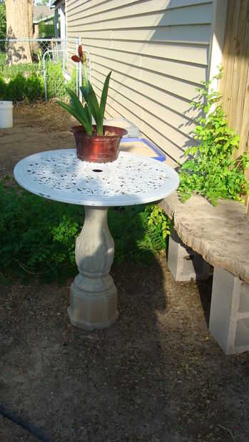 Aves baño o las piernas en lugar poner y la tabla superior en la parte superior. Ahí tienes una nueva mesa para su jardín! Se puede utilizar para una tabla de una pileta.