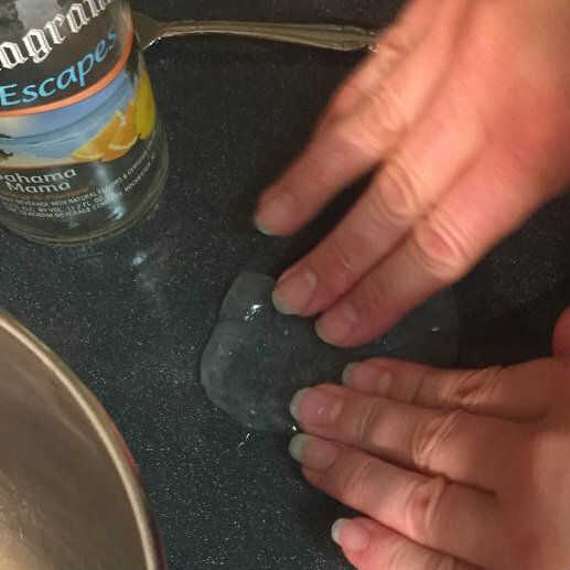 Se puede ver que mientras trabaja con él, enfriará y vuelta blanca. Si se pone difícil de trabajar con, inmersión en el agua. Si el agua se refresca apagado, añadir más agua que deja hervir a fuego lento en la estufa. (Mantener un ojo en ese pote. Si se hierve el agua, estropeará su olla, y podría iniciar un incendio).