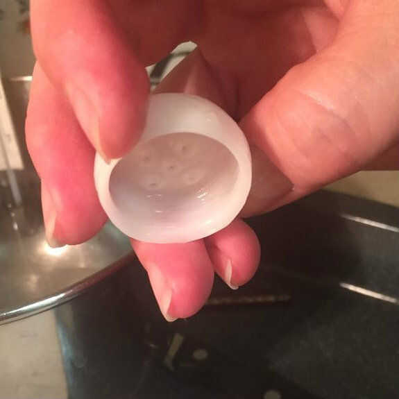Usar un nutpick o ice pick o un lápiz afilado para empujar los agujeros en la parte superior. Si estás haciendo un set para sal y pimienta, la sal generalmente tiene más agujeros que la pimienta, pero a ti. Utilizamos cinco hoyos, y la cantidad de sal con cada sacudida parecía correcta.