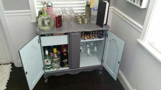 Agregamos en un vaso de vino pequeño holding estante a la derecha del armario para darle un poco almacenamiento extra. Poner su propia vuelta en él, usted puede Agregar pequeños detalles como las etiquetas engomadas de vinilo, monogramas, o algo de tu amor dentro de la plantilla. Cualquier cosa para que sea único y personalizado a tu hogar!