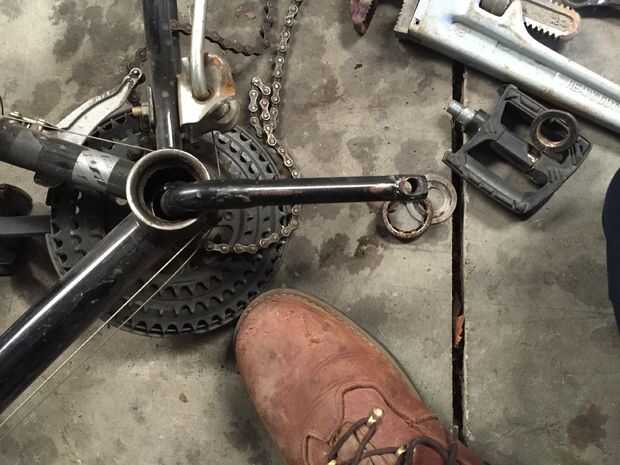 Esta es mi idea original de usar solo la moto. Así que desmonte el cubo. Hilo de rosca inversa. mi primera vez tomando uno aparte. Es súper fácil. Finalmente corte el tubo inferior y dejar sólo la parte delantera y el tubo.