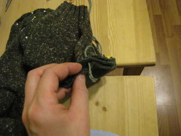 Así que si es posible, use hilo de lana para este paso. Tirar un trozo muy largo (1 1/2-2 metros) para evitar tener que anudar parcialmente a través de y comienzo otra vez con una nueva pieza. Es un poco difícil al principio, pero después de un tiempo obtienes un curso de ritmo y no es biggie.