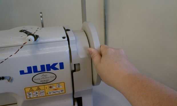 Usted necesitará apretar completamente y pulsado mientras giras el volante hacia usted. Como otras máquinas de coser industriales, probablemente deberás pisar ligeramente el pie de máquina para dar vuelta a la rueda.